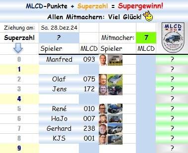 BonusPunkte in der Hall of Fame-Tabelle, welche ein aktiver MLCDler für Club-nützliche Aktivitäten angesammelt hat, sollen MLCD-Mitmachern* hier Spaß und kleine, möglichst M-Klasse oder MLCD-bezogene Gewinne einbringen, solange der MLCD-Kraftstoffstand es zuläßt und sich ausreichend viele Mitspieler finden.