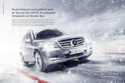 Im Zentrum der neuen Werbekampagne steht ein 45 Sekunden langer TV-Spot, der auf charmant-unterhaltsame Weise mit drei bekannten Protagonisten aus dem Sport überrascht. Er verweist auf die Allrad-Kompetenz von Mercedes-Benz, die bis ins Jahr 1979 mit der Vorstellung der G-Klasse zurückreicht. Der Werbe-spot 4MATIC ist ab 22. Dezember 2010 auf allen reichweitenstarken TV-Sendern zu sehen. Ergänzend zum TV-Spot werden bereits seit dem 10. Dezember 2010 Printanzeigen und Außenwerbung geschaltet. Die Printanzeigen bewerben mit drei verschiedenen Motiven das Allradsystem in der E-Klasse und im GLK. Sie werden deutschlandweit in auflagenstarken Publikumszeitschriften, Special Interest-Medien sowie überregionalen Tageszeitungen zu sehen sein. Die Außenwerbung nutzt dieselben Motive und wird im Großraum Stuttgart geschaltet.