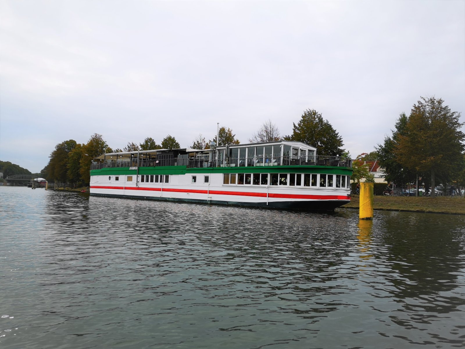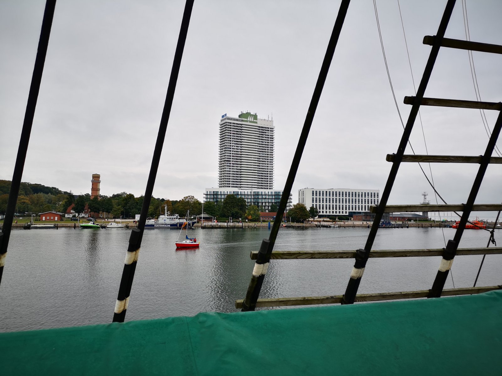 Zur Erklärung von dem weiß-roten Schiff: da ist heute eine Italiener-Gaststätte drin. Davon sind im 2. Weltkrieg um die 25 Stück gebaut worden, zum Transport von Munition. Deren Rumpf ist aus Beton gegossen. Somit bestand keine Gefahr das sie von Magnetminen versenkt wurden.