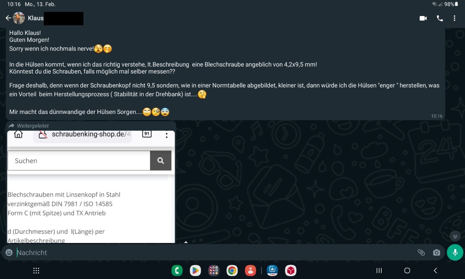 Es gibt noch Rückfragen von der Drehbank (siehe Hartkopien...)