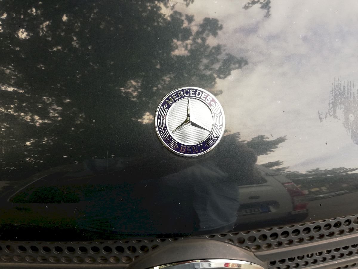Der Mercedesstern der Motorhaube ist so ein Hingucker. Den der ist fast gänzlich ausgebleicht und kaum noch als solcher zu erkennen.