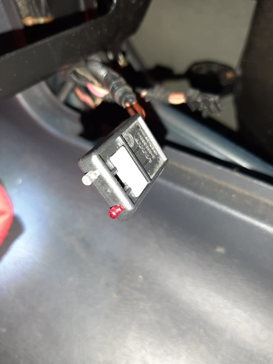 Und das war das ganze Hexenwerk - mit einem Schlitzschraubendreher wird das graue Plättchen angehebelt; somit löst sich die Verriegelung und beide LWL lassen sich einfach nach hinten herausziehen. Sobald die fahrzeugseitigen LWL hineinpraktiziert sind (gem. Markierung!), wird das graue Plättchen wieder heruntergedrückt - das sollte es dann gewesen sein.