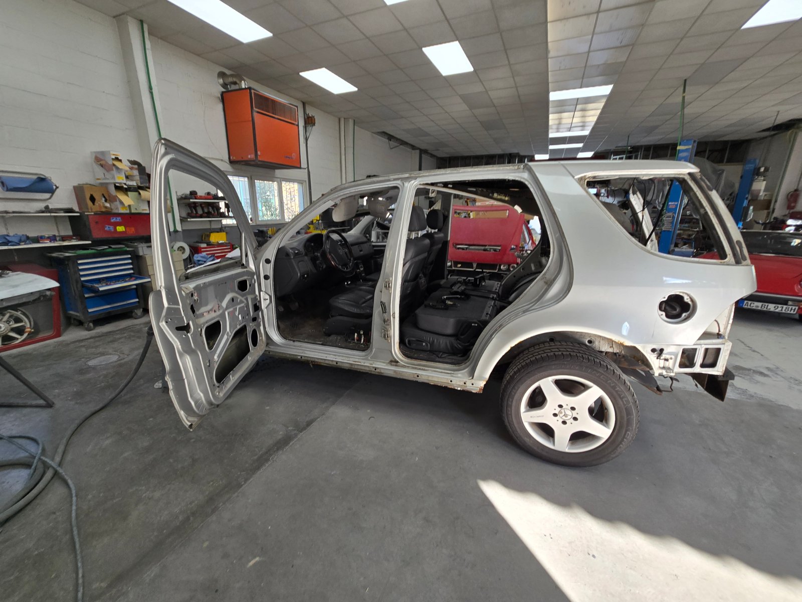 Nun ist es soweit: Unser ML steht seit einer Stunde in der Karosseriewerkstatt, wo er hinten zwei neue Radläufe erhält, ansonsten die Türen von den komischen Lackblasen befreit werden sowie Rost an den vorderen Radläufen beseitigt, eventuell sogar die Kotflügel erneuert und der ML komplett neu lackiert wird.