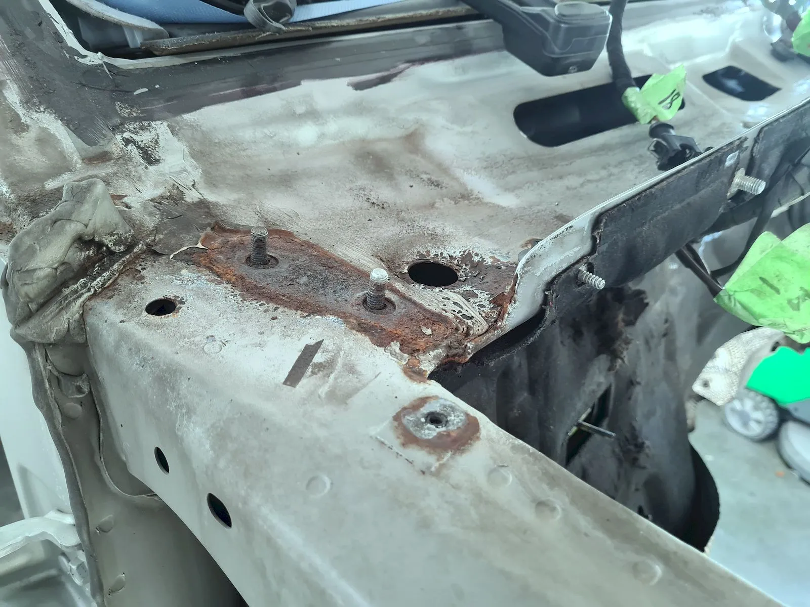 Motorhauben Befestigung. Offensichtlich von MB beim Bau in keinster Weise rostgeschützt.