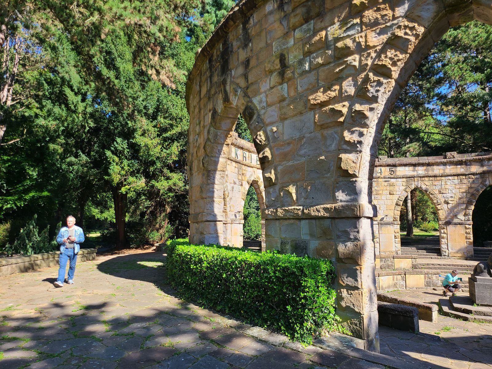 Und dann? Die haben ja ganz schön viele Bäume hier. Und ein Ehrenmal mit See.