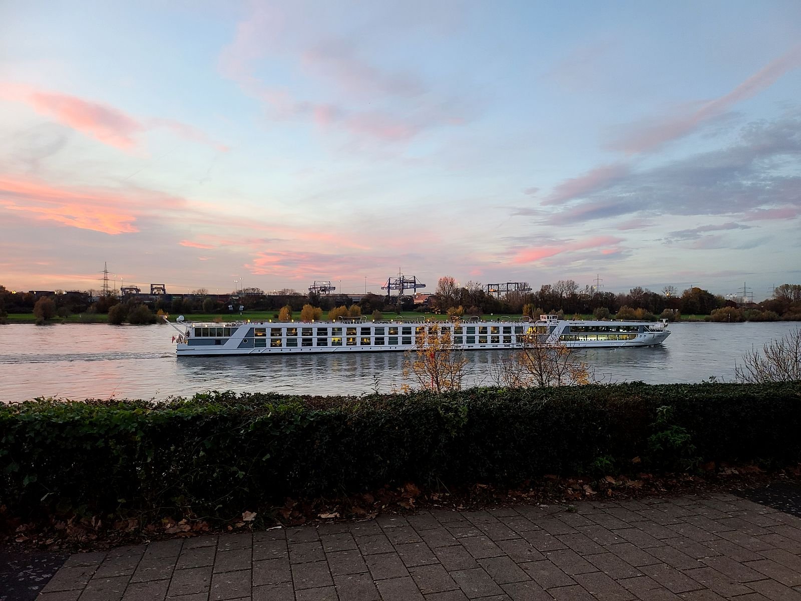 Na, mal sehen wieviele 2 Schweizer auf´m Rhein, die hier kurz hintereinander durchkamen, mit Sonnenuntergang beim MLCD-Stammsitz bringen.