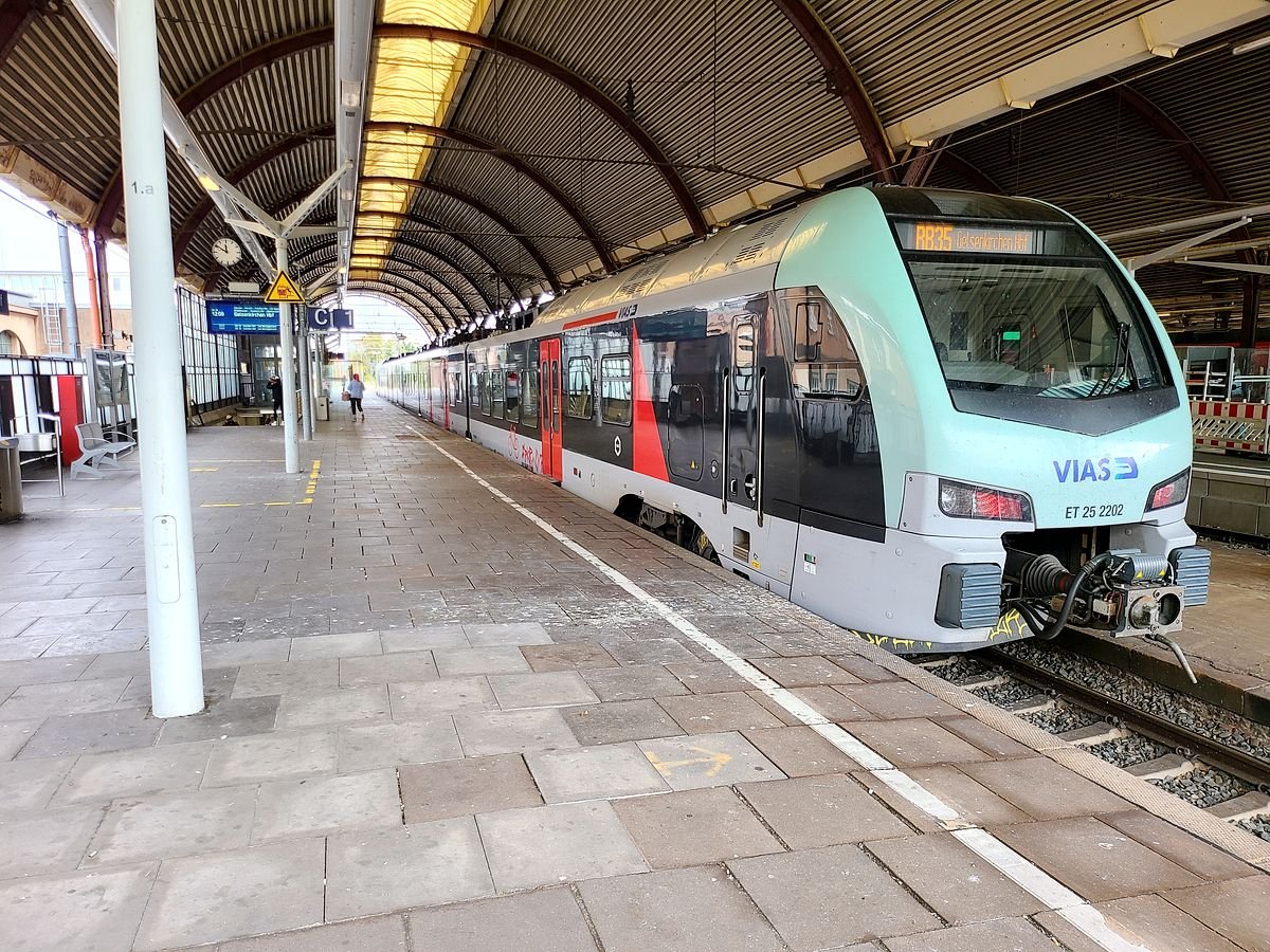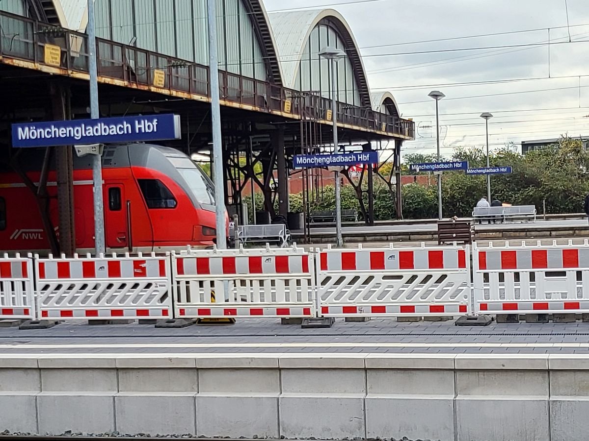 Unsere Durchschlaucht hat auf Gleis 1 den Hauptbahnhof von Mönchengladbach mit einer Verspätung von 2 Minuten verlassen und befand sich in Fahrtrichtung Aachen, die geplante Abfahrtszeit der RB 33 war 12:22 Uhr. Abfahrt laut DB-Navigator 12:24 Uhr.