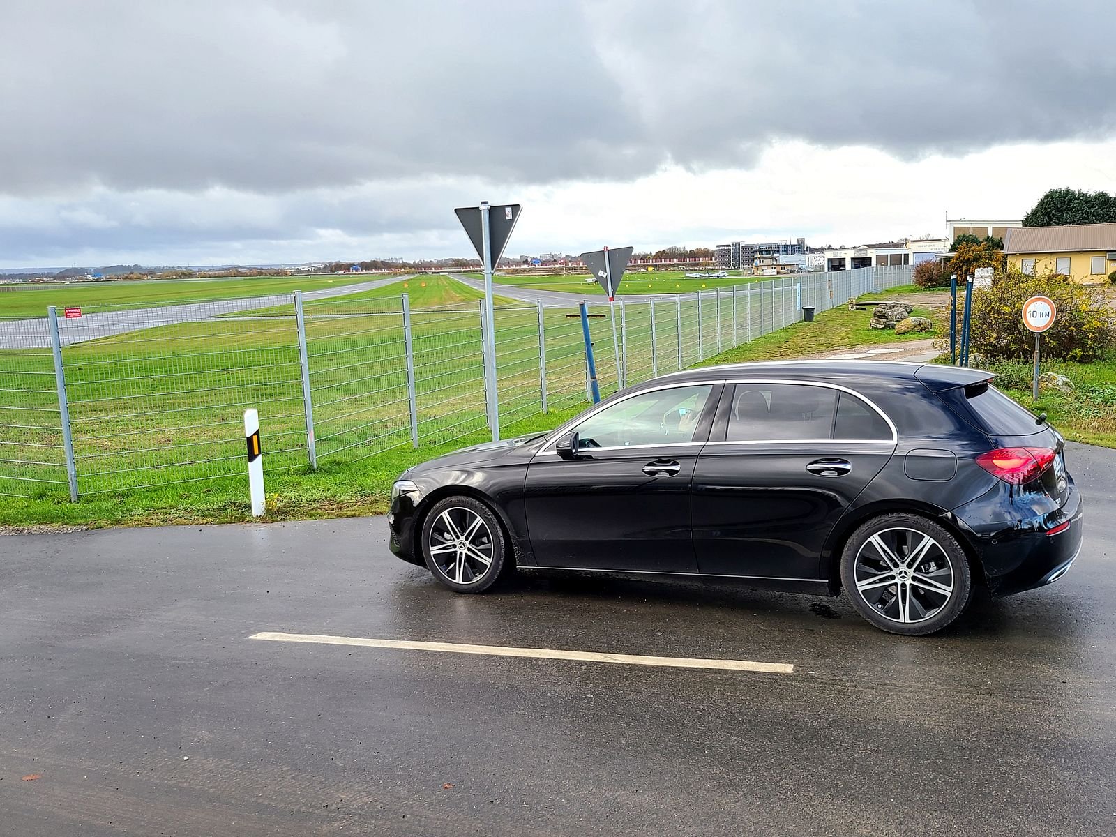 dann später auch ein und nach einer kurzen gemeinsamen Stippvisite bei Herrn Hilgers im Ersatzteilverkauf und der Neuwagenausstellung, haben wir uns dann mit der als Leihwagen zur Verfügung gestellten A-Klasse dort verabschiedet. Unser nächstes Ziel sollte die NATO-Airbase in Geilenkirchen-Teveren sein, wo die AWACS-Flugzeuge zur Luftraumüberwachung stationiert sind, die man an den mit einer überdimensionalen "Sirene" auf dem Dach montierten - dem sogenannte "radar dome", eine riesige, rotierende Radarscheibe - erkennt. Die Landebahn haben wir auch besucht, aber leider keinen aktiven Flieger gesehen. Und da es ganz schön kalt und zugig war, sind war dann weitergefahren, um am Flugplatz Aachen-Merzbrück zumindest den gerade landenden ADAC-Rettungshubschrauber Christoph Europa 1 beobachten zu können, der auch Einsätze im benachbarten Belgien und den Niederlanden übernimmt.
