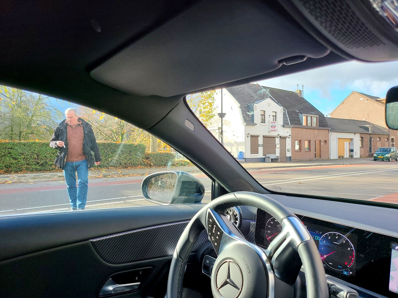 Herr Chevalier hatte den Rennschlitten von Susi Sausewind schon eingeliefert und den Mietwagen, einen A180 übernommen. Mit der Anmerkung "Ein- und aussteigen wär kaum ohne körperlichen Schaden zu bewerkstelligen" gings dann zum teilezuständigen Herrn Hilgers, wo die Ersatzteilbestellung noch in den SLK 250 umzuleiten war.