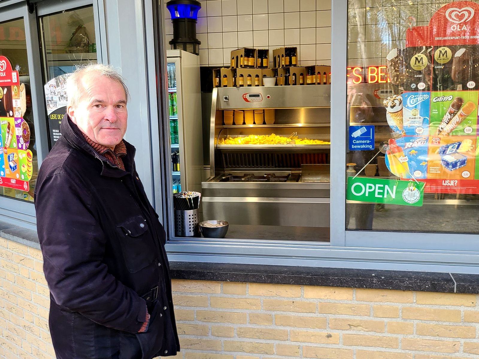 Nun ging es langsam gegen Mittag und so beschlossen wir, unseren Hunger in der letzten der drei Pommesbuden zu stillen, deren Fritten mal von Björn Freitag im WDR getestet wurden, wir aber noch nicht aufgesucht hatten. In Aachen und dem belgischen Kelmis waren wir bereits, es fehlte noch die Pommesbude im niederländischen Vaals (Maastrichter Laan 164). Gelungen ist es uns leider nicht, denn diese hat am Sonntag und Montag Ruhetag, ist aber von Dienstag bis Samstag von 12-21Uhr geöffnet. So haben wir also umdisponiert und sind zum höchsten Punkt der europäischen Niederlande, dem Vaalserberg mit 322,4m, gefahren, wo auch der dort "Drielandenpunt" genannte Ort liegt, an dem sich Deutschland, Belgien und die Niederlande treffen. Und dort fanden wir auch noch eine geöffnete Pommesbude, wo wir uns mit Fritten speciaal stärkten.
