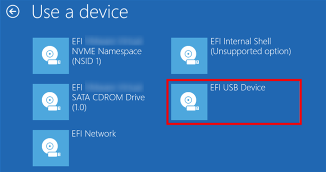 "EFI USB Device" oder "Generic USB device" auswählen - wenn der USB Stick steckt, bootet das System dann von diesem.