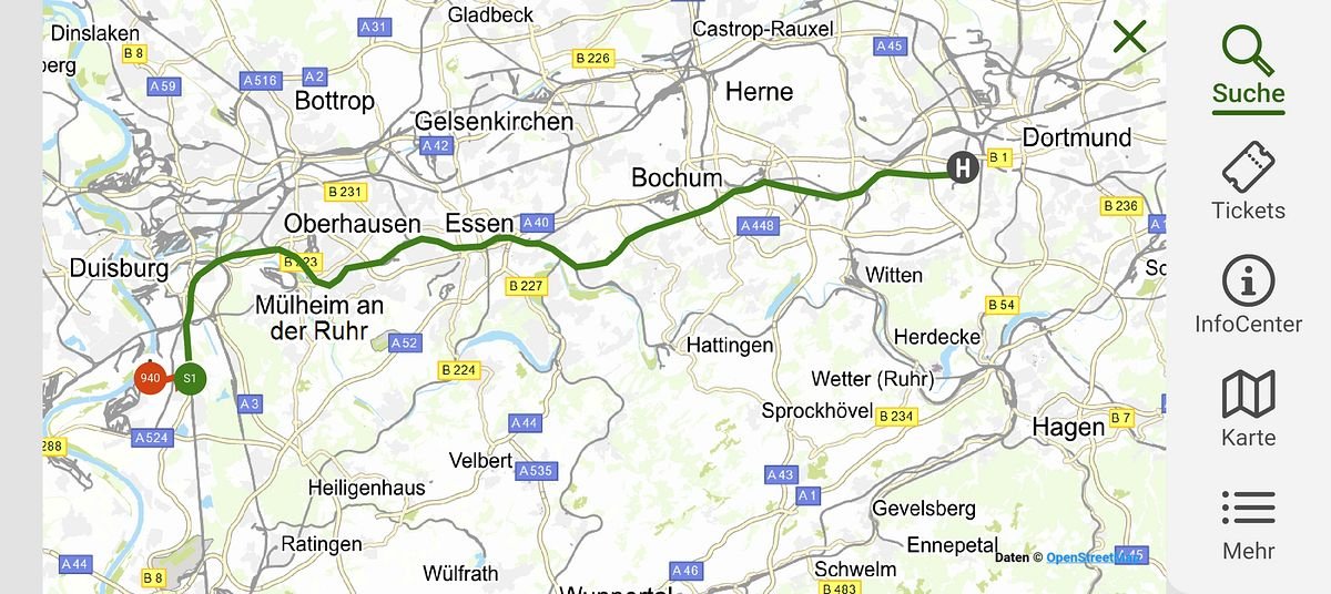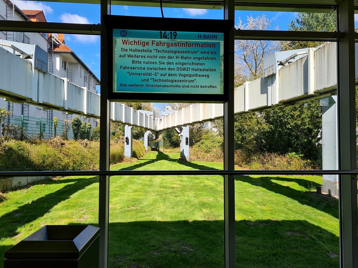 Den fast Baugleichen Sky-Train vom Düsseldorfer Flughafen hatte ich schon besucht. Das war gegenüber der H-Bahn aber Kindergeburtstag. Hier gehts dagegen richtig zur Sache. Nehm ich mal lieber den Bus... Und dann die S1, erstmal bis DU-Hbf.