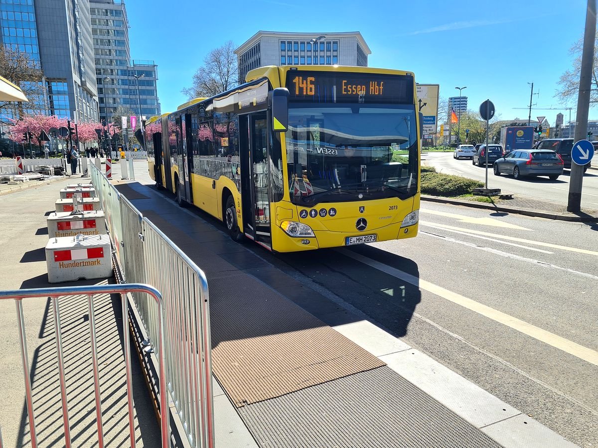 Erstkontakt beim Essener Hauptbahnhof. Sieht aus wie ein ganz normaler Gelenkbus.