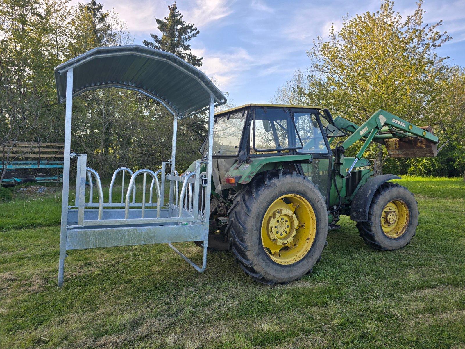 Fettich! Jetzt hänge ich den gleich am Johnny an (Dreipunkt und anheben) und bringe den zu den Pferden, von denen heute eins Geburtstag hat. Mal sehen, ob es sich freut.
