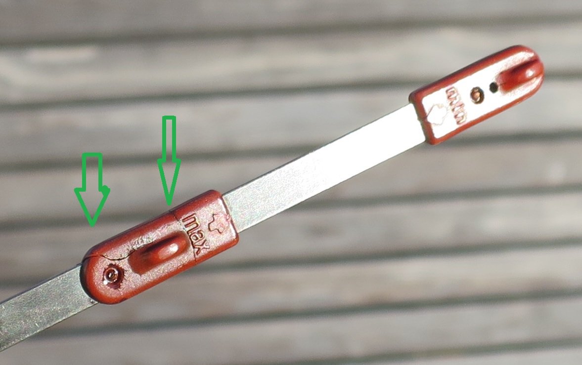 Dann fiel mir noch auf, dass die obere Markierung am Ölmeßstab Risse hat. Da frag ich mich wie das sein kann. Die untere Markierung hat keinen einzigen Riss. Und ich frag mich auch, ob die obere Markierung irgendwann abfällt, im Öl landet und einen Motorschaden verursacht? Hat dazu jemand Erfahrungen oder was gehört?