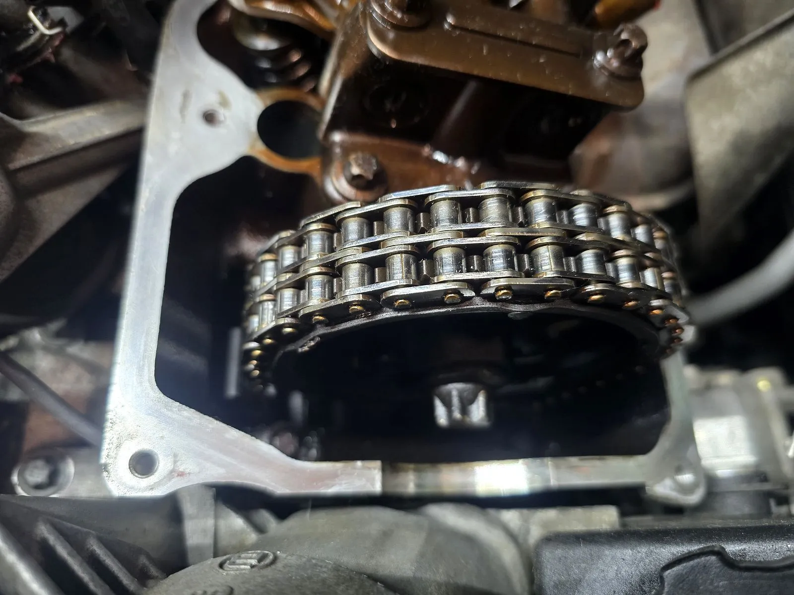 Und, wenn ich Deinen Beitrag richtig verstehe, hast Du diese Dichtmasse zusätzlich bei der im Bild zu sehenden Dichtung der Zylinderkopfhaube verwendet. Zusätzlich zu der dort verbauten Dichtung, was Dir jetzt diese Schwierigkeiten eingebracht hat.