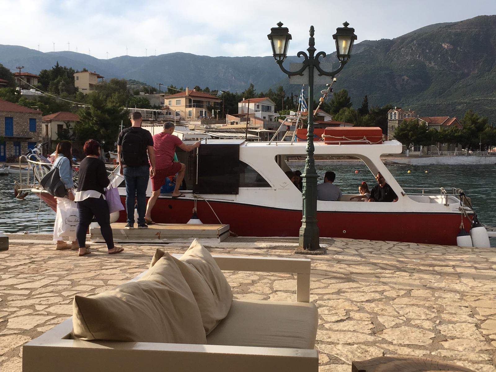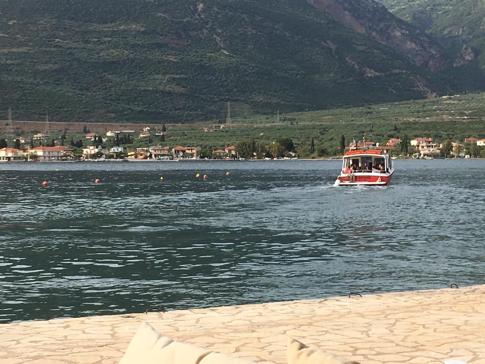 Wir sind ja auf der kleinen Insel Trizonia im Golf von Korinth „gestrandet“. Alles was man zum Leben braucht, müssen wir auf dem Festland holen. Dafür gibt es ein kleines Fährboot, was immer zur vollen Stunde übersetzt. Die Fahrt dauert genau 5 Minuten und kostet € 1,— pro Person und Strecke...