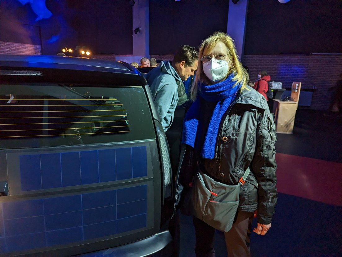 Trotzdem habe ich mir gestern mal dieses "Solarauto" ansehen können und es hat mir und Barbara gut gefallen. Hier eine paar Eindrücke: Ich im Innenraum Blick in den Motorraum Heck, bei dem Licht kann man die integrierten Solarzellen sehen