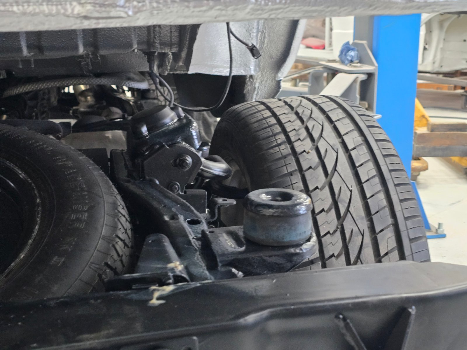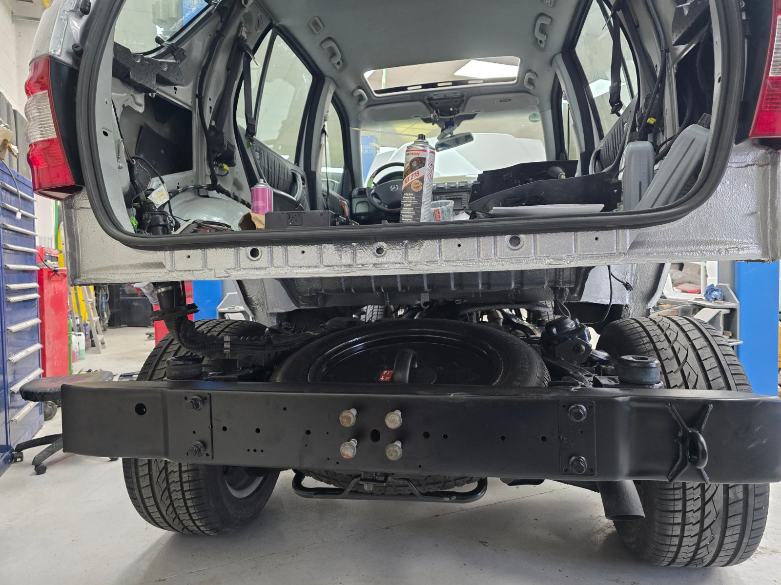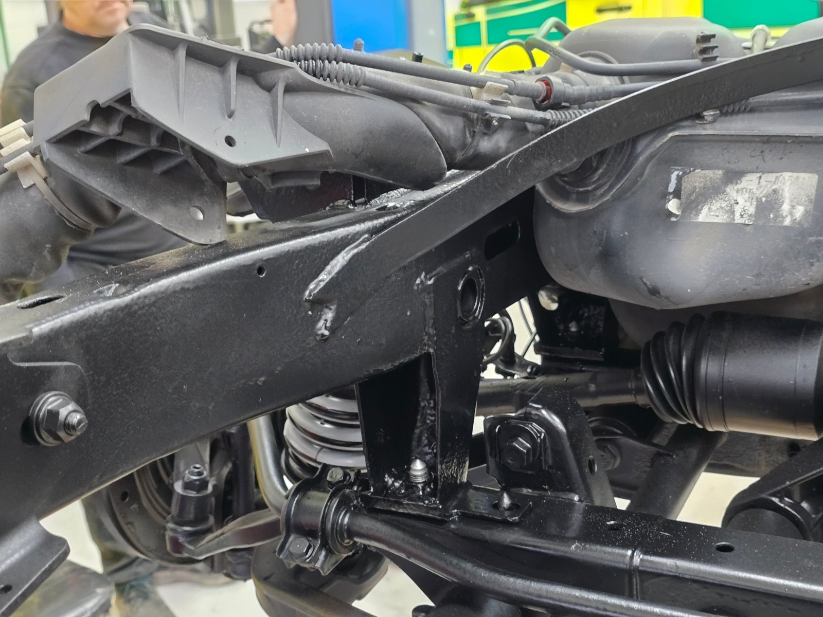 Und selbst hier, wo die Karosse vom Rahmen getrennt ist, sind die Verbindungspunkte von Rahmen und Achsträgern extrem spät aufgefallen.