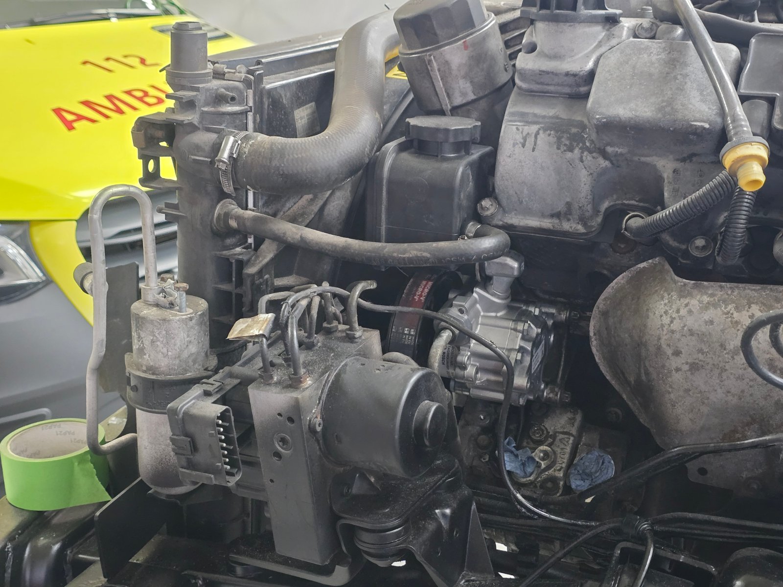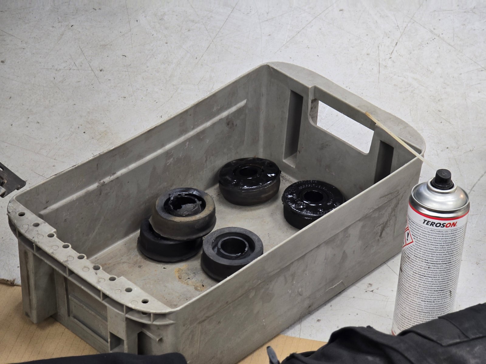 Aber so repariert man nicht fachgerecht. Scheint mir eher eine Notlösung zu sein, denn mit eingebautem Motor kommt man wohl an die rückwärtige Seite den Aufnahme nicht dran? Dann ist komplettes Austrennen wohl nicht möglich. Schöner wäre also - Motor runter vom Rahmen, und diesen komplett überholen.