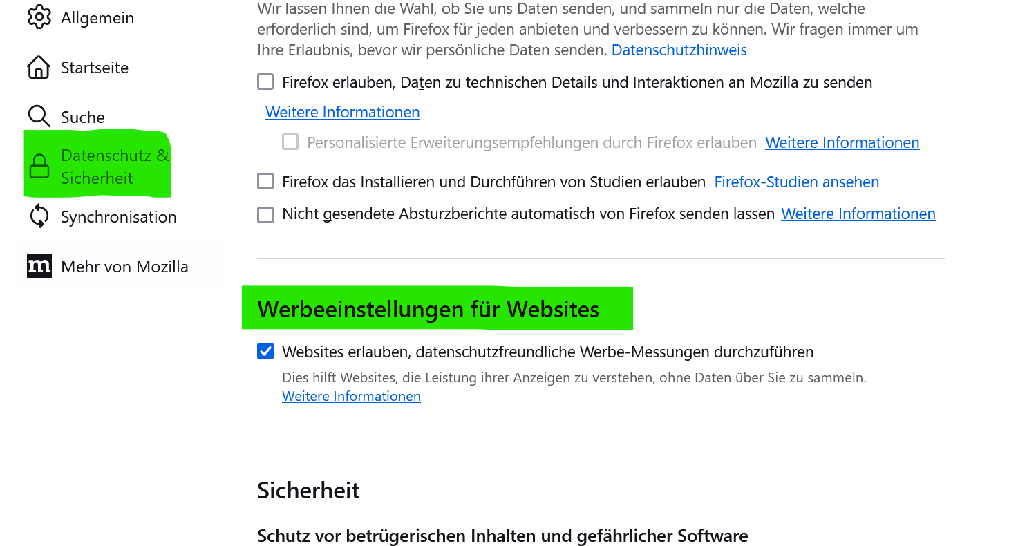 Jeder, der den Firefox einsetzt und auf die neueste Version aktualisiert, wird folgende Voreinstellung in seinen Einstellungen finden: