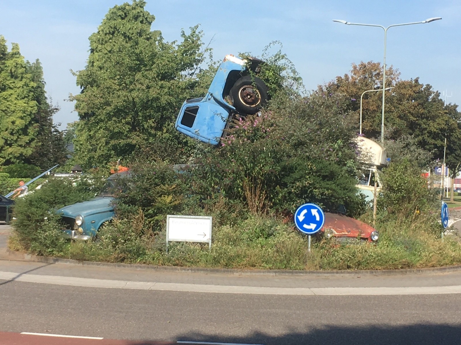 Erinnert ihr euch noch an HOTTE ? ... der ist jetzt bei den „Guten“...! Hotte hat mal eine Geschichte erzählt, wie er - ich glaube es lag Schnee - 2 Kreisverkehre auf direktem Weg überquert und umgepflügt hat... Auf unserem Camping-Ausflug nach Panningen habe ich einen Kreisverkehr fotografiert, wo etwas Ähnliches passiert sein muss...