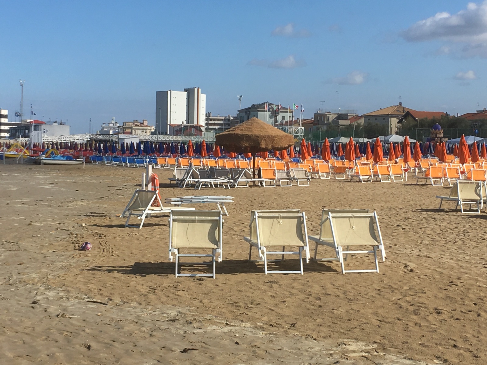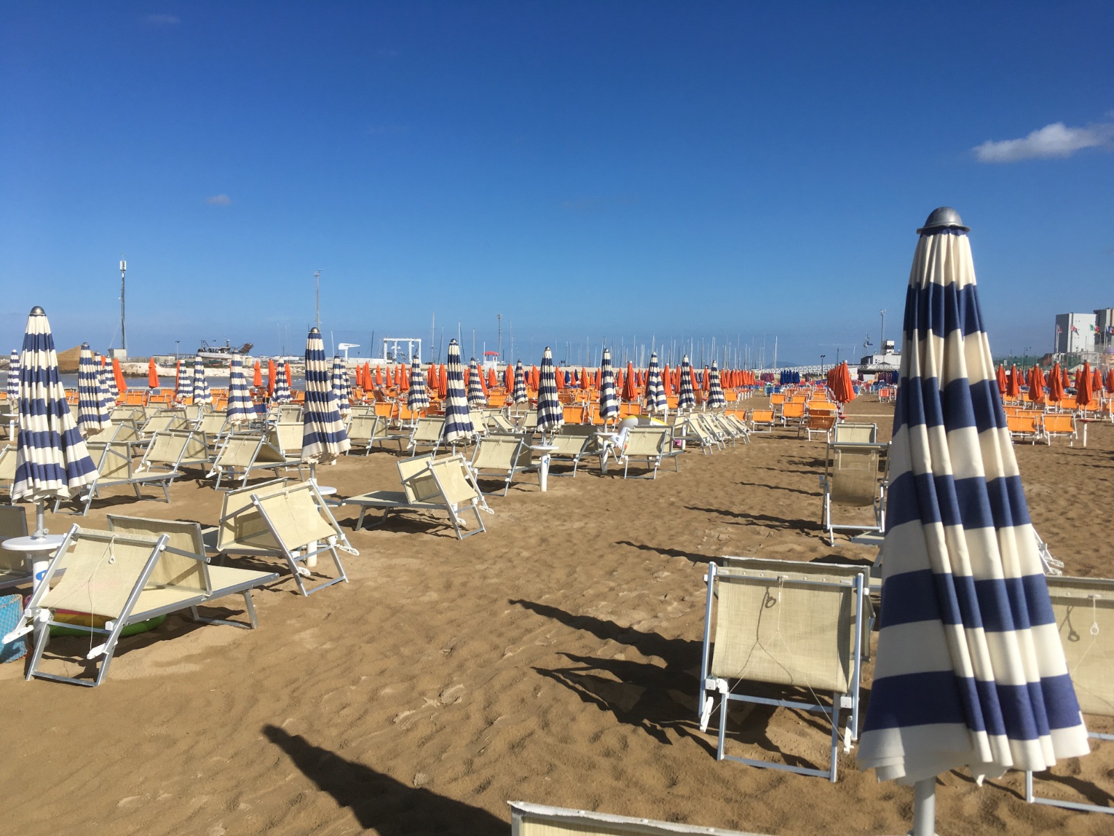 Am Montag haben wir schnell unseren Wohnwagen in Immenstadt bei Fa. Neuss abgestellt und dann bei strömendem Regen via Rechenpass, Insbruck und Brenner nach Italien. Nach einer B&B Zwischenübernachtung kurz vor Bologna ging es gestern zur Fähre nach Ancona (16:30 h Soll-Abfahrtszeit - Ist: 21:30) . Zeit genug also, um ab Rimini mal 150 km die Küstenstraße abzufahren. Ende August ist in Italien die Urlaubszeit vorbei und so gab es über zig Kilometer das gleiche Bild: leere Strände, leere Bars, Leere überall...! Und das war gut so! Wir wollen gar nicht wissen, was da im Sommer los ist.... : Die Verspätung unserer Fähre hat uns heute ein kostloses Frühstück und 25 % Rabatt auf unsere nächste Reise eingebracht...