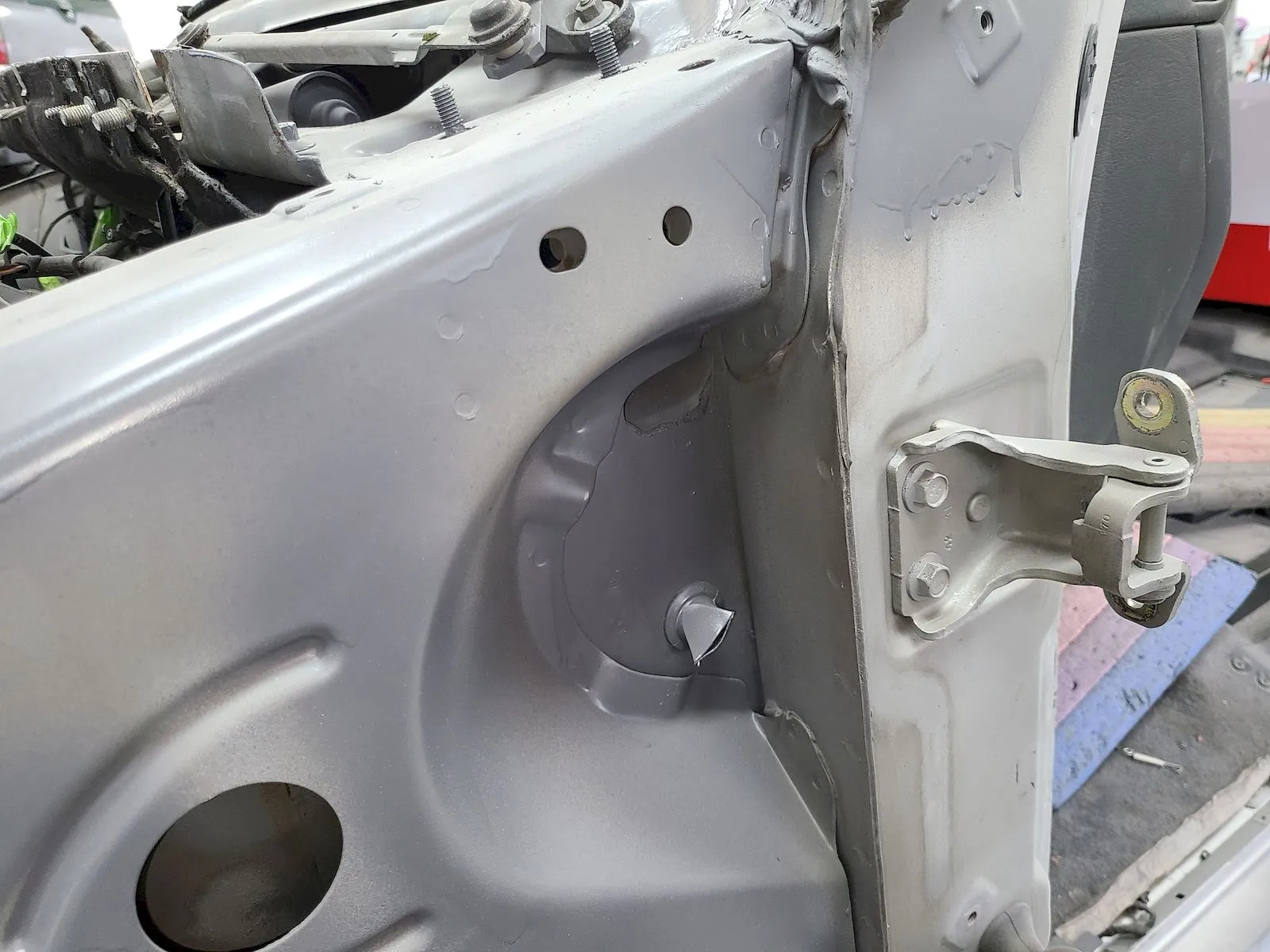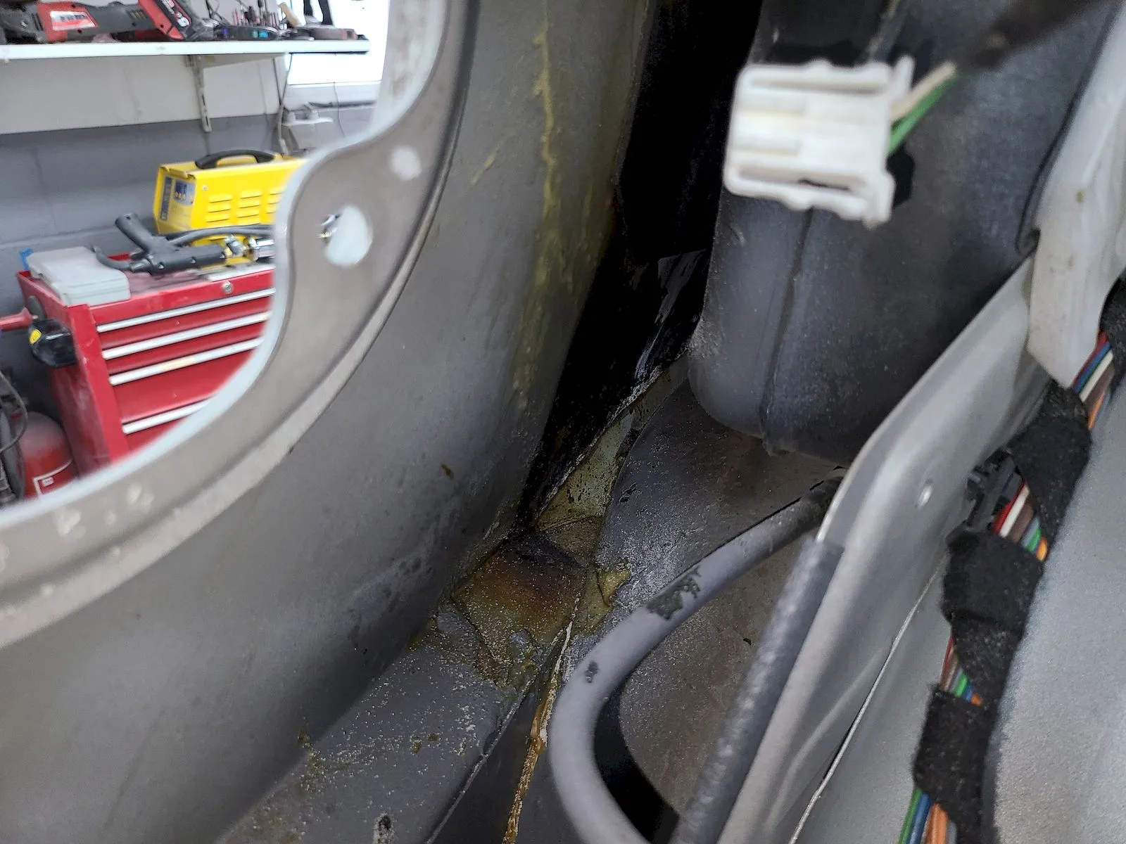 Was man nicht sehen konnte, sind die Arbeiten unter den hinteren Kotflügeln, dort ist alles schon fertig. Und auch im vorderen Bereich ist ordentlich gearbeitet worden, die Arbeiten an den Stehblechen, die Teile, an denen die Kotflügel befestigt werden, sind schon beendet, obendrein mussten noch weitere Demontagearbeiten gemacht werden, wie z.B. die Entfernung des Scheibenwischergestänges und der Leitungen, die von links nach rechts an der Spritzwand verlaufen, da dahinter noch große Mengen Sand vom Sandstrahlen beseitigt werden mussten. Leider habe ich davon heute keine Bilder, da ich mich beeilen musste, um noch rechtzeitig vor Ladenschluss, Futter für unsere Pferde zu kaufen. Viele Grüße! Manfred093