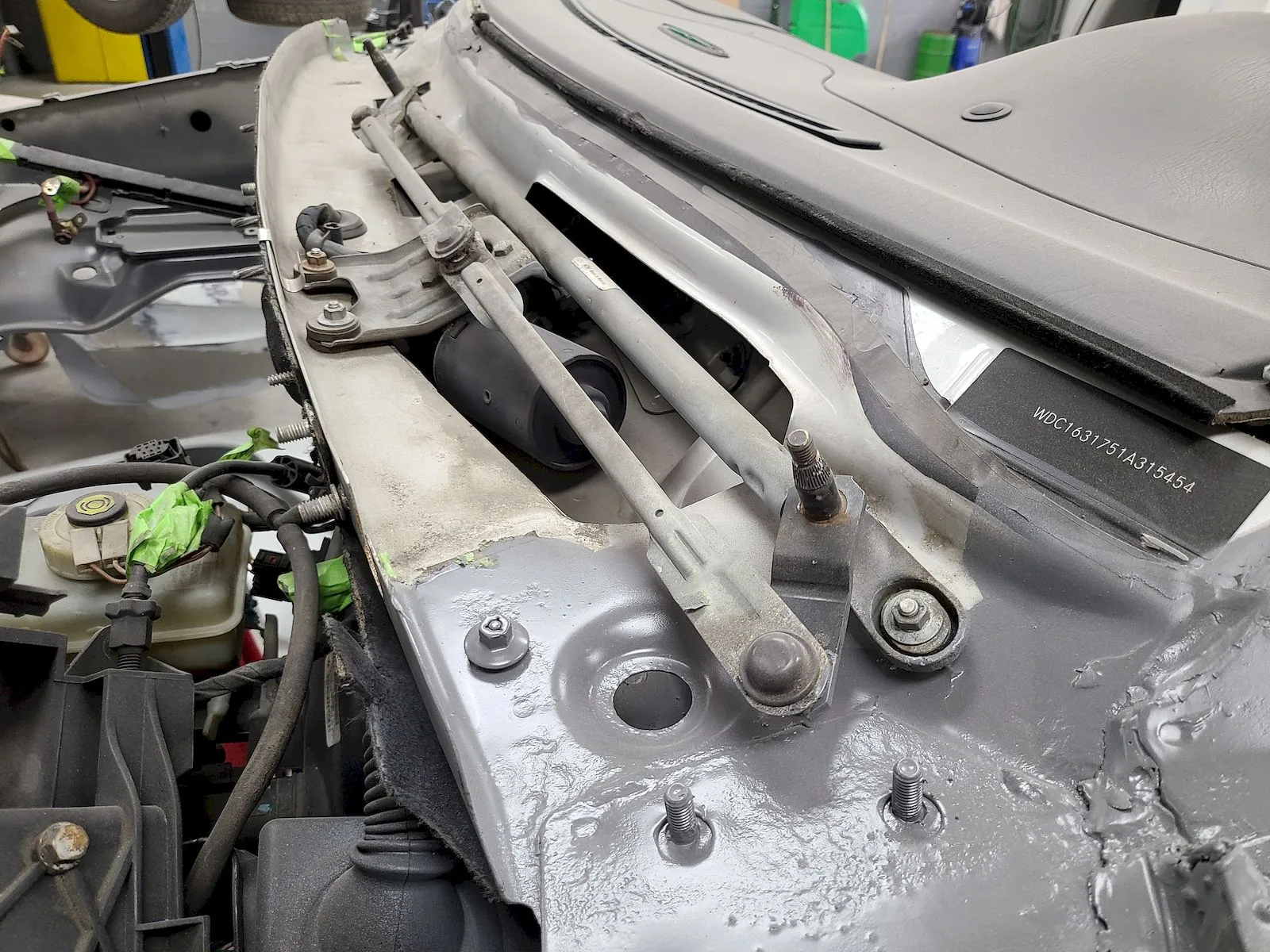 Gestern war ich mal wieder bei unserem ML, der langsam aber sicher Fortschritte macht. Mit Glück wird die Karosserie vielleicht in etwa 14 Tagen lackiert werden. Dieter Kurabi fragte mich schon, ob ich vielleicht eine andere Farbe wählen möchte, denn schließlich wird ja alles inklusive Motorraum lackiert werden. Aus Gründen der Originalität habe ich mich aber wieder für 744 Brillantsilber entschieden. Außerdem könnte ich mich nach gut 500.000km an eine andere Farbe auch nicht gewöhnen. Anbei mal Bilder vom aktuellen Zustand.