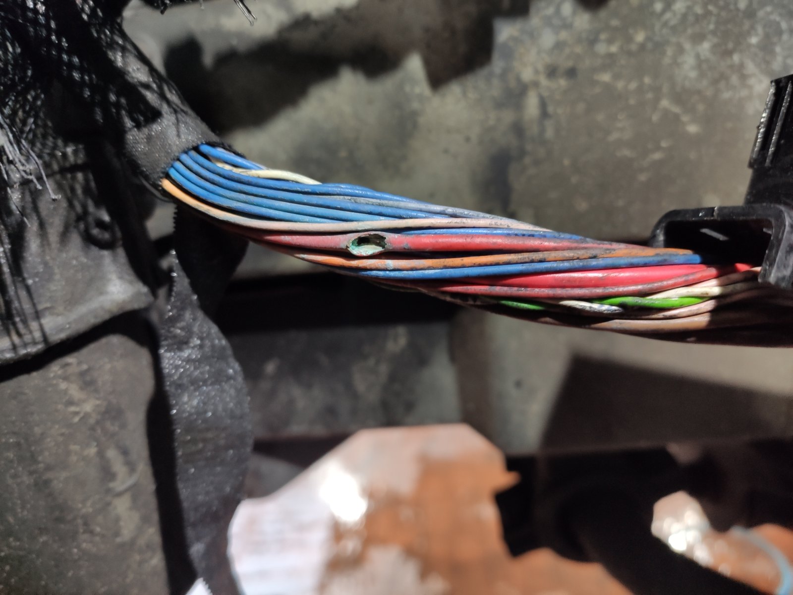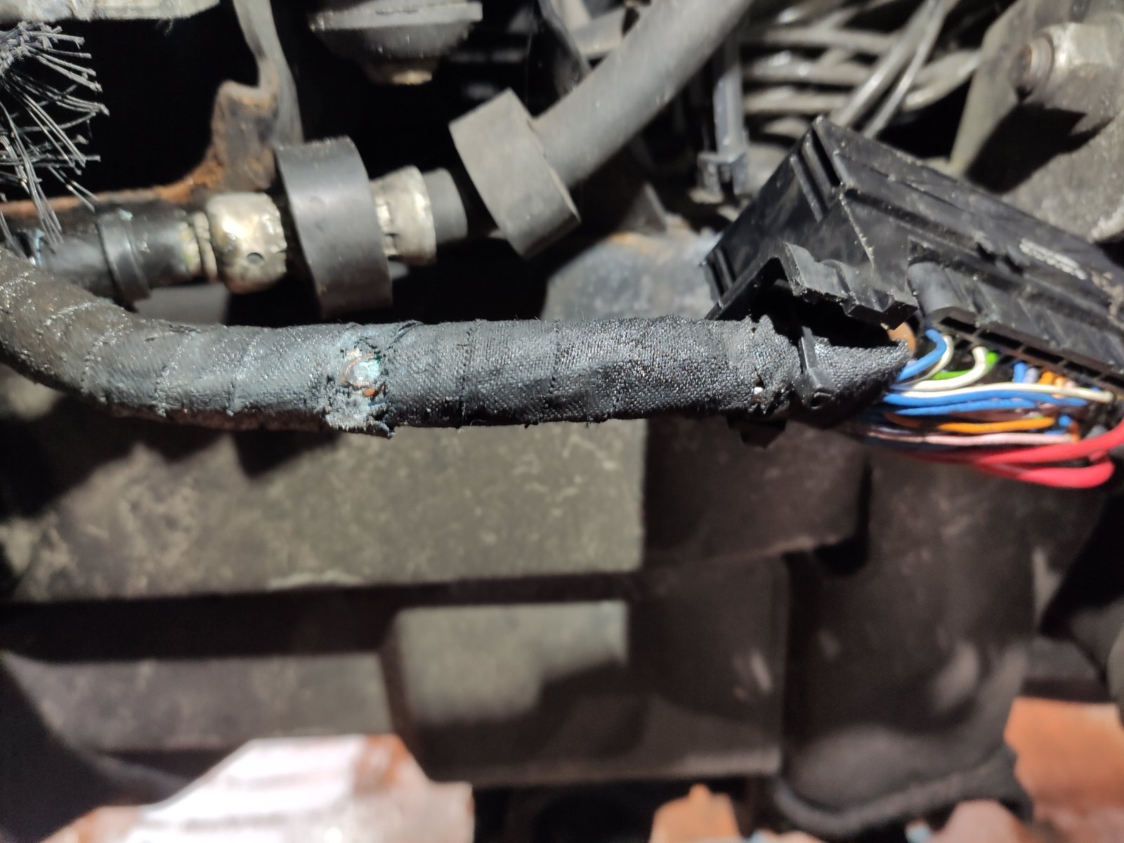 Fehlerbeschreibung "Bremsmoment unplausiebel" hatte ich eher Richtung Löseschalter oder BAS-Sensor als Auslöser erwartet und darum den Kabelbaum mal genauer beäugt.