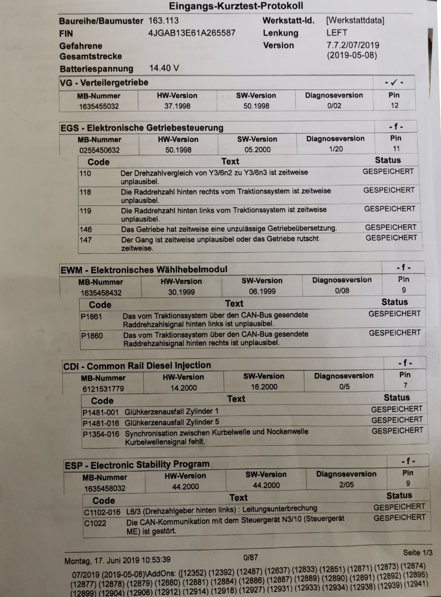 Ich konnte leider keine eigenen Fotos machen, weil ich am anderen Ende der Stadt war. Das ist der Ausdruck, den Mercedes mir überlassen hat. Der bearbeitende Meister war leider schon im verdienten Feierabend...