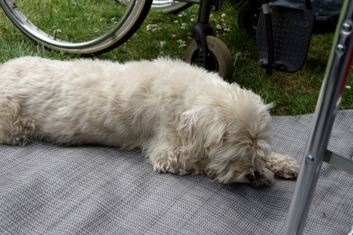 Hier unser mittlerweile betagter Wuffi. Da wir manchmal auch nicht so richtig wissen wo bei unserem Romeo das Vorder- oder das Hinterteil ist, halten wir ihm etwas Schmackhaftes hin und dann, wie man hier sieht, lässt es sich ganz gut erkennen. Aufgenommen wurden die Bilder im Mai, während unserer Fahrt nach Toul.