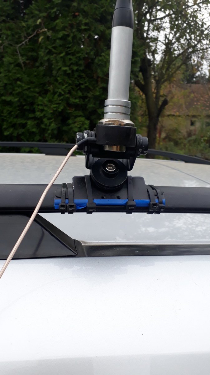 Die Antenne habe ich an der Reling beschädigungsfrei montiert. Habe einen alten Antennenfuß modifiziert, mit Gummi hinterlegt und mit 6 Kabelbindern befestigt. Hält bombenfest..