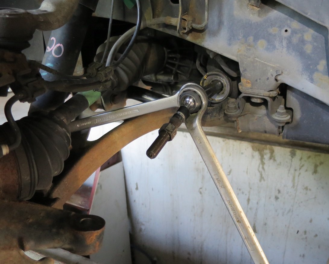 für den Sechskant der inneren Spurstangen benötigt man einen 38er Schlüssel…. Nachdem ich nirgends einen fand, auch nicht in ebay, hab ich meine großen Zoll-Schlüssel nachgemessen und siehe da: 1,5 Zoll sind ziemlich genau 38 mm. So gelang der Wechsel.