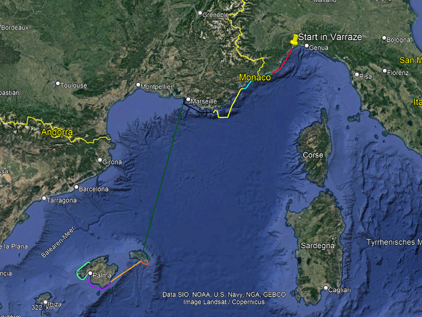 Der Törn führte uns von Varraze entlang der französischen Küste bis Marseille. Von da ging es nach Menorka, mit zwei Stopps vor Anker sind wir anschließend nach Mallorca gesegelt. Von Palma ging es westlich um die Insel bis Söller. Insgesamt 600 Seemeilen in 10 Seetagen mit einer 36 Stunden Fahrt, war richtig schön mit einem ganz tollen Wetter.