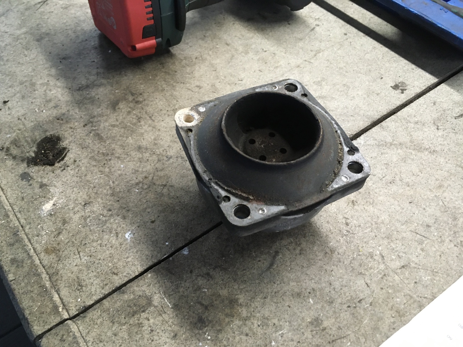 Montagetechnisch war der Tausch des Lagers (6 Schrauben) gaaaanz einfach - zumindest in der Theorie! Eine der 4 Schrauben, die in das Getriebe rein gehen, war auf der gesamten Gewindelänge korrodiert und wollte nicht raus! Erst eine heiße Flamme