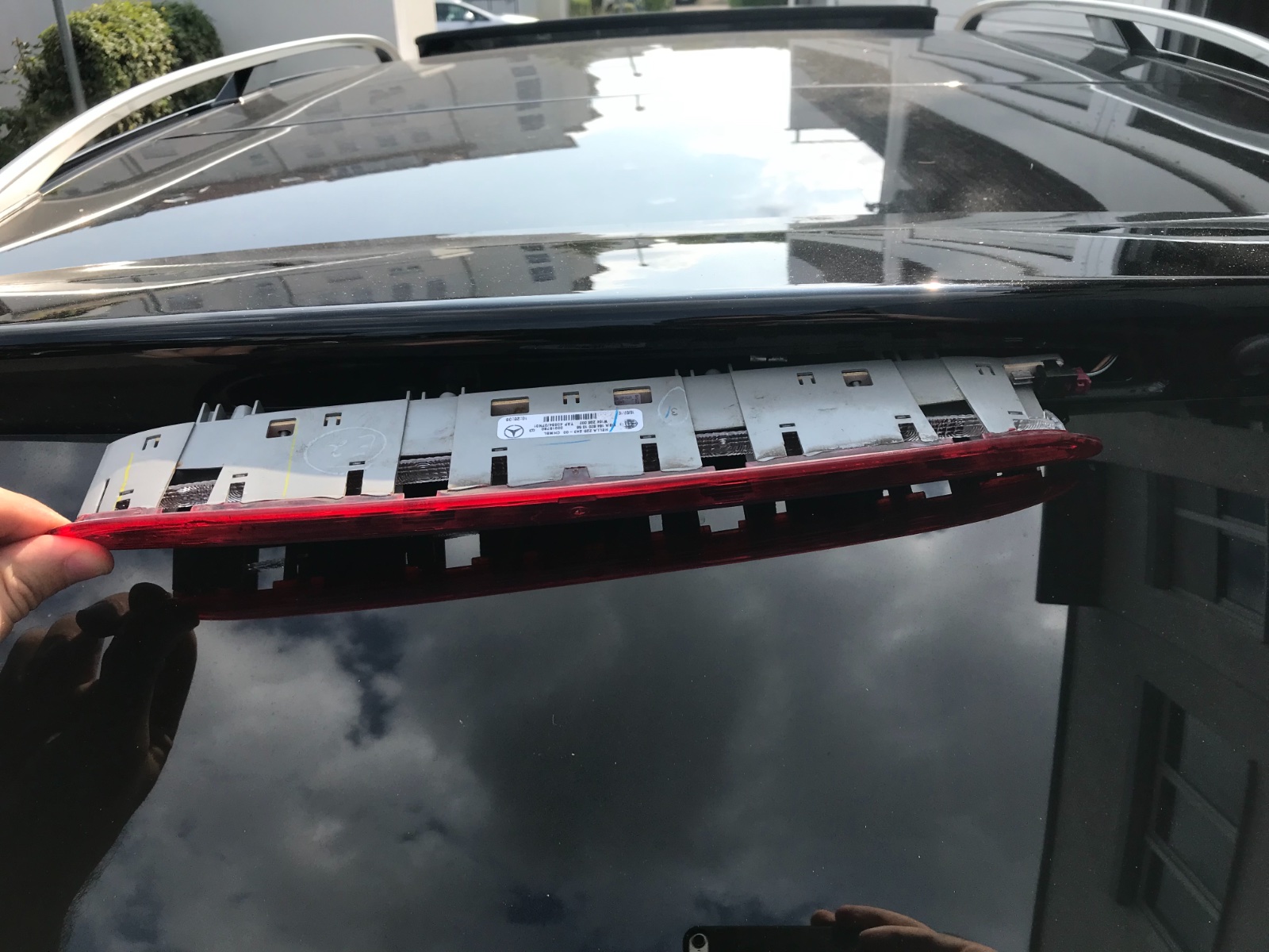 - Zum Ausbau der Leuchte braucht man ein Torx15. Mercedes hat vier Löcher gegenüber der vier Schrauben in den Heckdeckel gestanzt um mit einem langen Torx diese zu lösen. Bloss nicht hebeln!!! (Bild folgt)