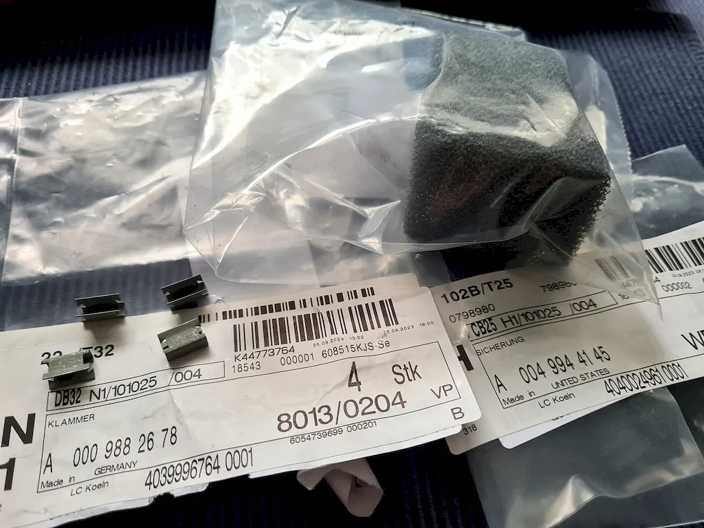 Die Klammern für den Windabweiser sind genauso falsch, wie ich sie schon mal bestellt hatte. Und vom Sperrschaumstoff wurde nur einer statt 2 geliefert. Die (nicht sichtbaren) Klammern für den Luft-/Wasserkasten scheinen ok zu sein.