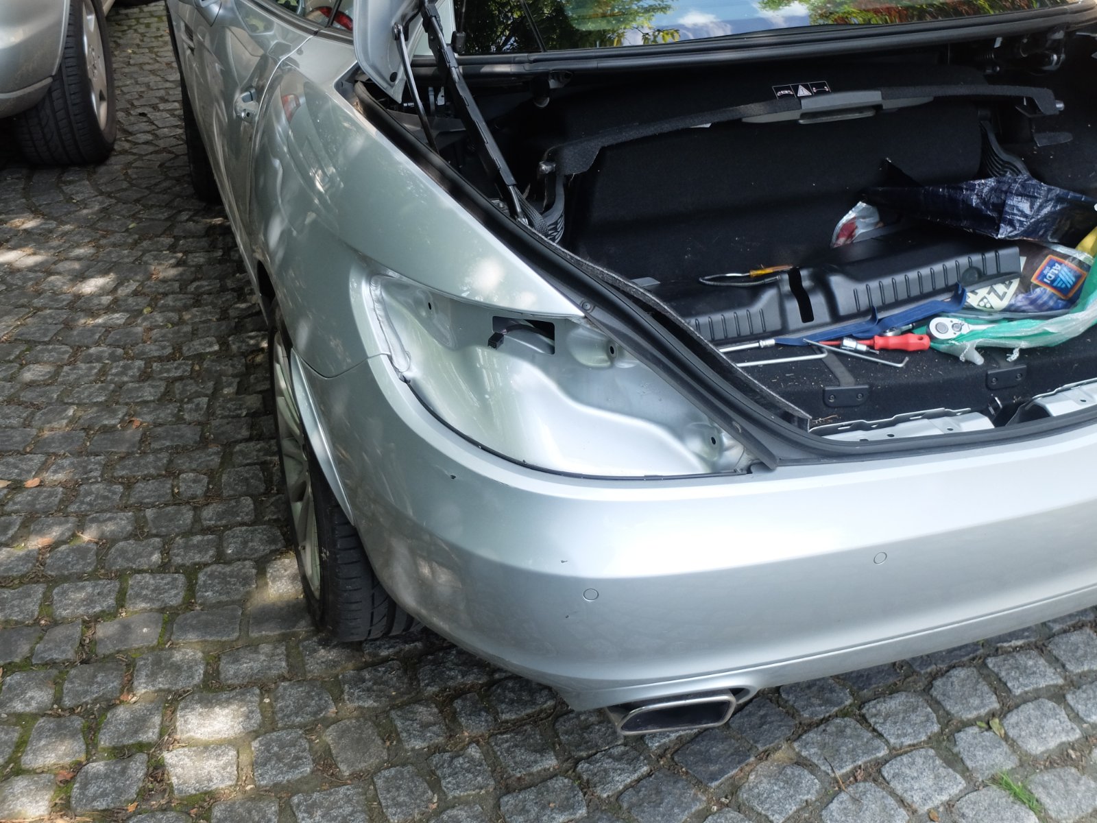 Leider bin ich erst heute dazu gekommen, die Rückleuchte des Rennschlittens zu erneuern. Eigentlich nicht schwierig, wenn man erst einmal weiß, wo sich welche Verkleidungsclips befinden. Auch muss man herausfinden, dass man an eine Mutter nur gelangt, wenn man das Schiebedach öffnet, aber stoppt, sobald der Kofferdeckel senkrecht steht. Insgesamt nur drei Muttern, aber diverse Clips.