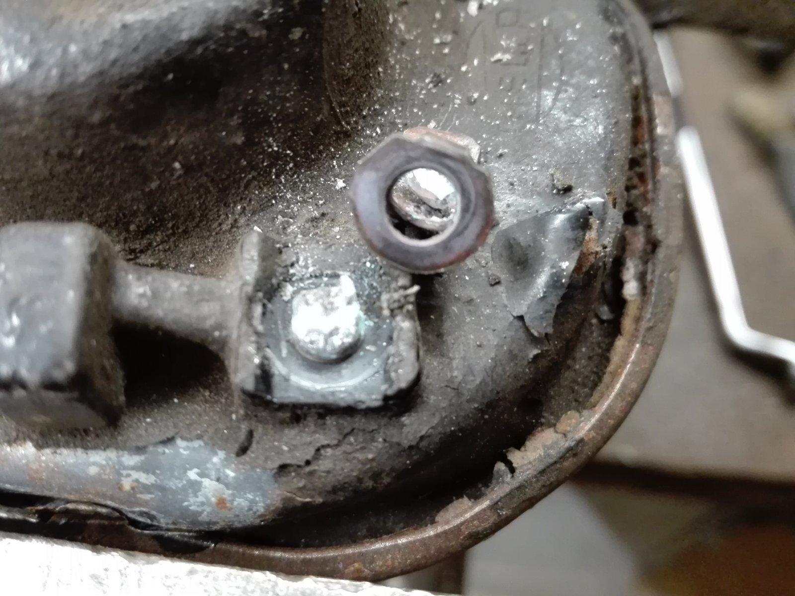 Die rechte Hupe hab ich beim ASz bestellt, nebst den beiden Befestigungsmuttern, die ich mir dann einfach mal gegönnt habe, da die sich doch arg gewehrt haben. Ein Stück des Linken Befestigungsbolzens ist dabei vernichtend geschlagen worden. Glücklicherweise blieb genug übrig um das Horn wieder ordentlich festzuschrauben.