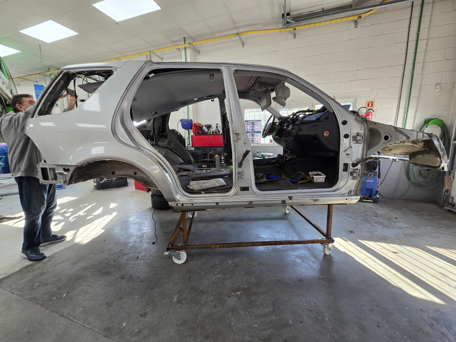 Motor und Getriebe bleiben drin. Da man aber im momentanen Zustand sehr gut an den Motor kommt, werden wohl die Ventilschaftdichtungen erneuert, denn der Motor hat immerhin 510.000km gelaufen. Das wird dann ein Motorinstandsetzer dort vornehmen. Die Fahrwerksteile sind vor nicht allzu langer Zeit erneuert worden. Das geht auch gut, wenn der ML wieder zusammengebaut ist.