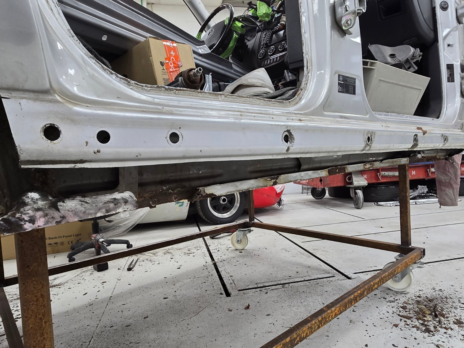 Unser ML hat diesmal an der Karosserie Fortschritte gemacht. Die Teile der hinteren Radläufe und der Einstiegschweller, die vom Rost befallen waren, sind herausgetrennt.