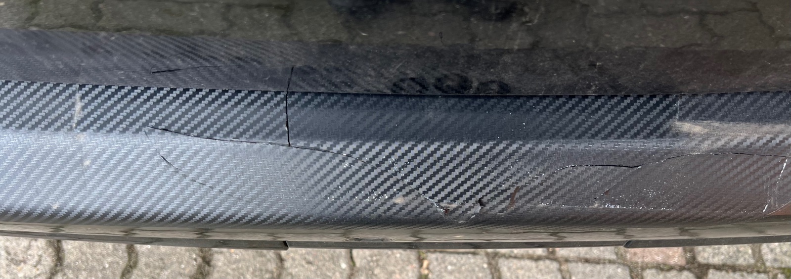 Mir ist auf dem Parkplatz, als es sehr kalt war, einer hinten reingefahren und ist dadurch an einer Stelle mehrere Riße entstanden. (Siehe Foto) ich hoffe ich kann das, wenn es wärmer wird, von unten mit Glasfaser reparieren und eventuell dann neu lackieren.
