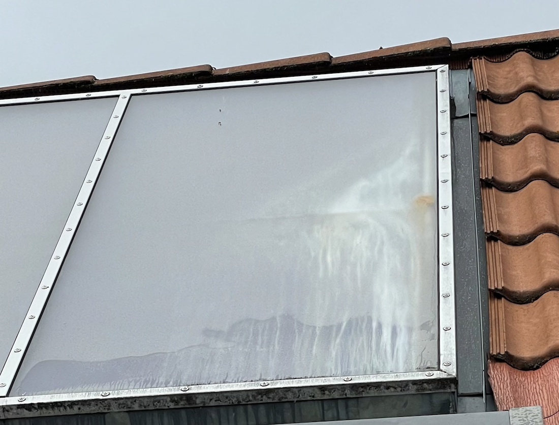 Hier in Ostbelgistan gab es schon seit einiger Zeit keinen Regen mehr, wohl aber Sand aus der Sahara, der nicht nur den ML, sondern auch unsere Photovoltaikmodule verdreckt hatte. Die Module habe ich heute mal mit dem Gartenschlauch vom Balkon aus abgespritzt. Von dort aus kann ich alle erreichen. Die Messwerte ergaben danach eine Leistungssteigerung der Anlage um gut 10%. Anbei mal die Photos vor der Wäsche. So in echt sah das noch viel dreckiger aus. Einfach nur gelb. Den ersten Regen nach langer Zeit erwarten wir für Montag.