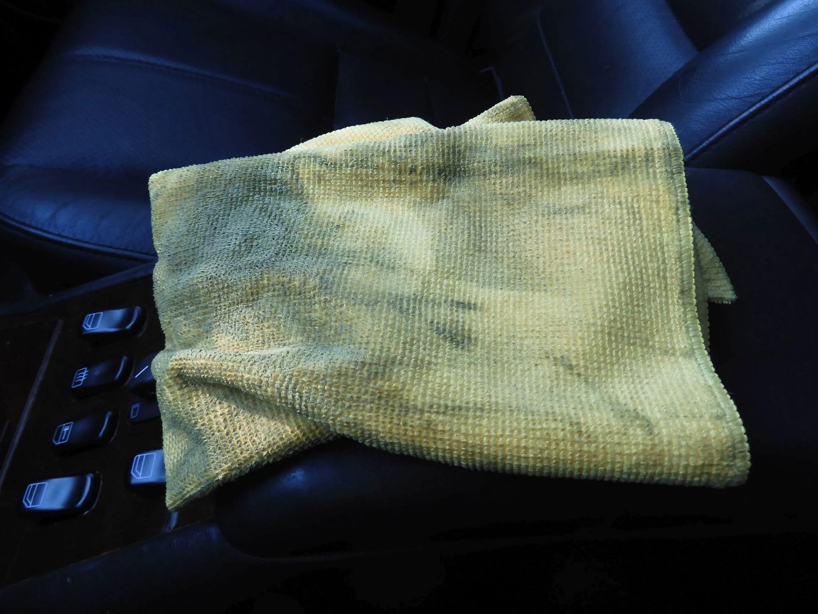 Aber so sah das mitgelieferte Pflegetuch aus, nur nachdem der Leather Cleaner Forte abgewischt wurde - alleine von der MAL. Es ist also schon erstaunlich, was da an Dreck haftet - und was man weg bekommt...