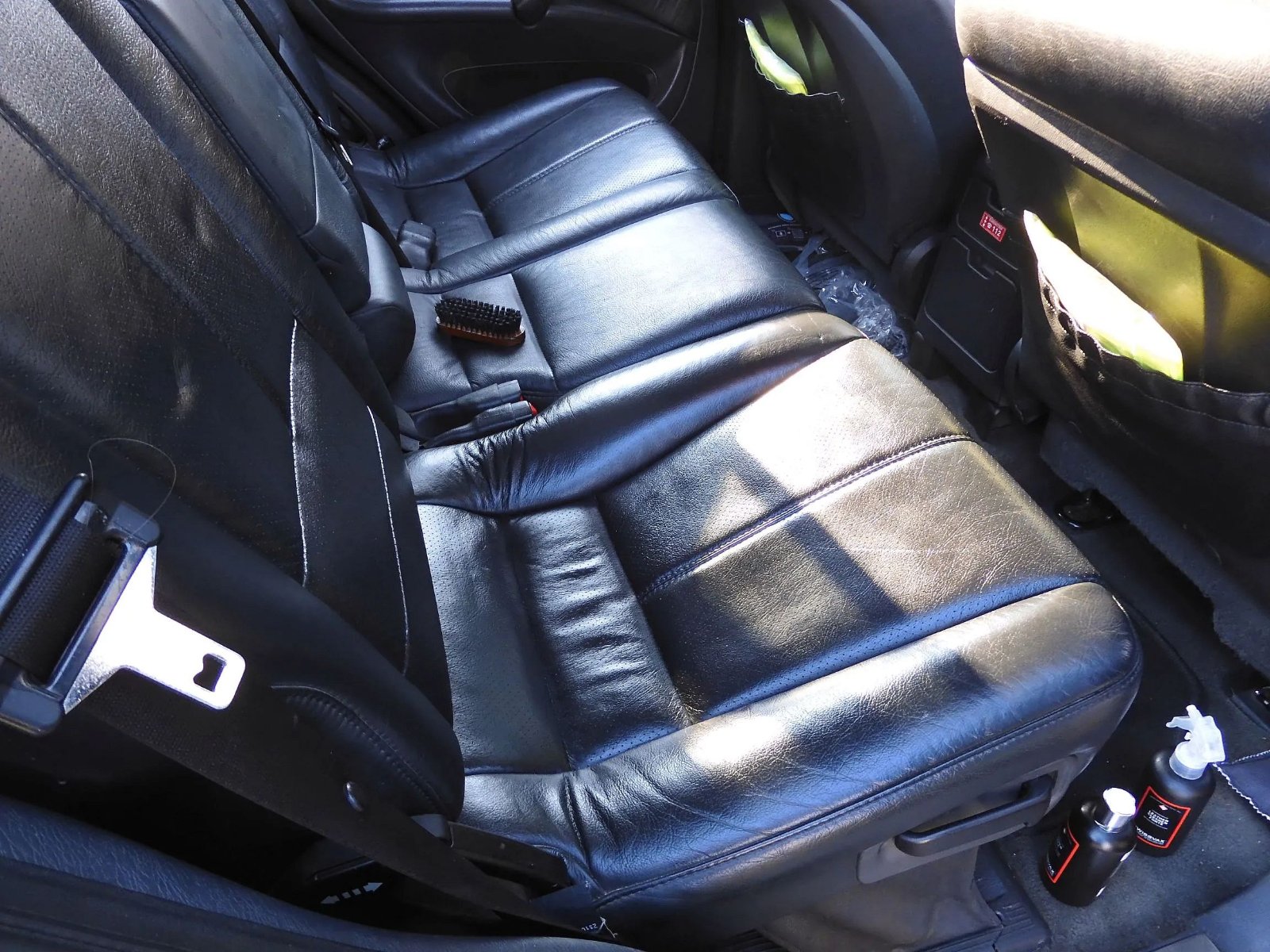 Hier wirkt gerade der Leather Cleaner Forte ein (wird mit einer Bürste aufgetragen und verteilt).