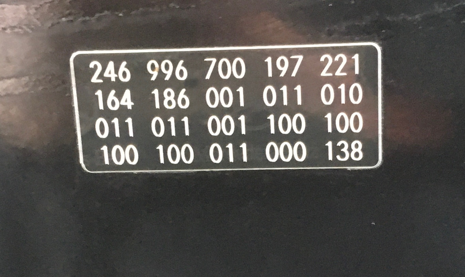 mein erster Beitrag, mit einer ganz banalen Frage: Wie bekomme ich heraus, welche Farbe mein Liebling eigentlich hat? Im KfZ-Schein steht „Schwarz“… aber welches? Ich habe im Motorraum drei Schilder, auf denen der richtige Farbcode stehen könnte, die Fotos habe ich angehängt. Für Antworten bedanke ich mich im Voraus.