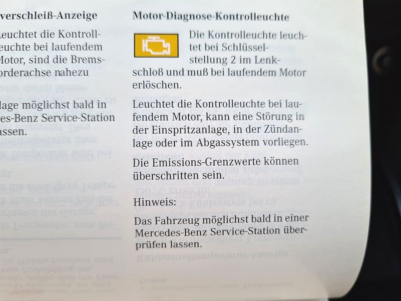 Als seit mehr als 40 Jahren im Ausland lebender Deutscher denke ich immer über Ländergrenzen hinaus. So wird die Betriebsanleitung vom ML von Herrn :koenich: sicher nicht nur mit Fahrzeugen ausgeliefert worden sein, die in Deutschland zugelassen worden sind, sondern auch mit Fahrzeugen, die im deutschsprachigem Nicht-EU-Ausland, wie z.B. Teilen der Schweiz ausgeliefert wurden. Dort wird ja auch nur die Funktion der Leuchte erklärt, wenn sie denn leuchtet. Wer sie nicht sieht, wird sich darüber sicher auch keine Gedanken machen. Und wann nun OBD2 in z.B. der Schweiz eingeführt wurde, weiß ich leider gerade nicht. So könnte es in der Schweiz also auch schon früher vorgeschrieben gewesen sein.