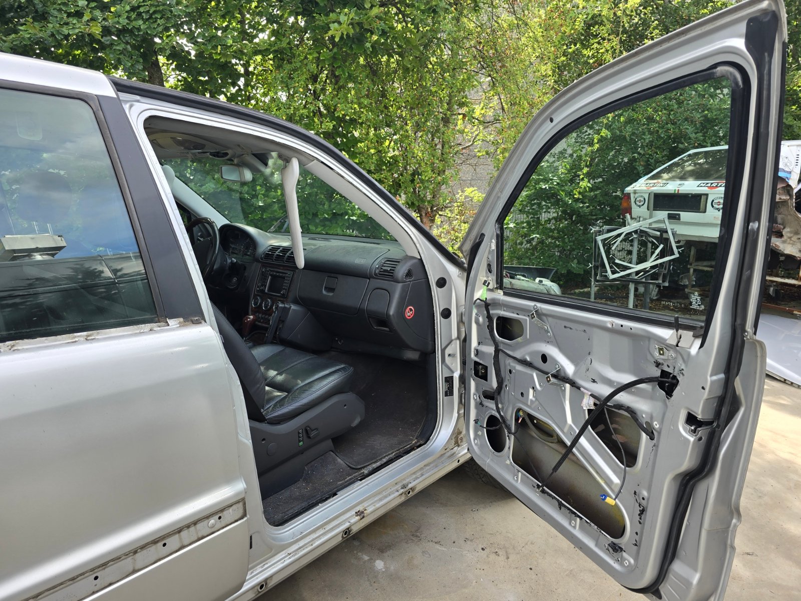 Eben habe ich mal wieder unseren ML besucht. Anbei ein paar Bilder vom augenblicklichen Zustand. Die Türen werden alle komplett abgebeizt. Die sind vor ca. 7 Jahren alle erneuert worden und von innen ordentlich eingesprüht, so dass dort keinerlei Rost, sondern nur die blöden Blasen im Lack sichtbar sind.