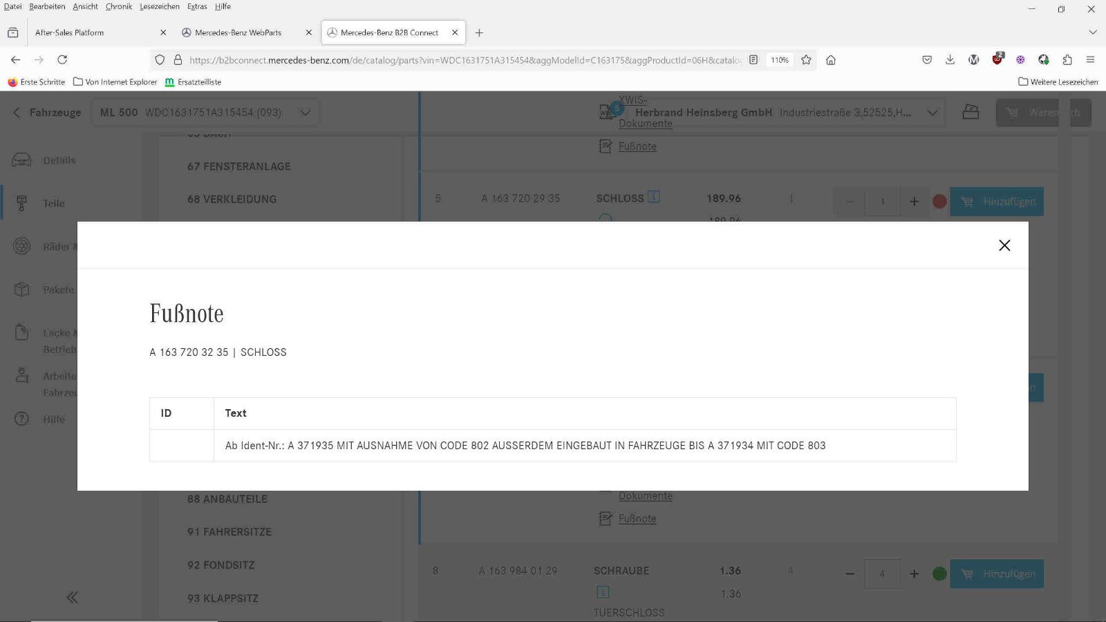 Bei B2B sind Dein ML, meiner und der von Holger038 vorhanden. Es hilft aber Nichts. Die Zusatzinfos zu den Teilen in WebParts fehlt. Dort kann man nicht mehr herausfinden, welche Zusatzbedingungen erfüllt sein müssen, damit entsprechende Teile passen, Im B2B funktioniert das. Da die Anfragen aber eher gering sind, sollte man die Fahrzeuge dort erst auf eine Anfrage hin anlegen.
